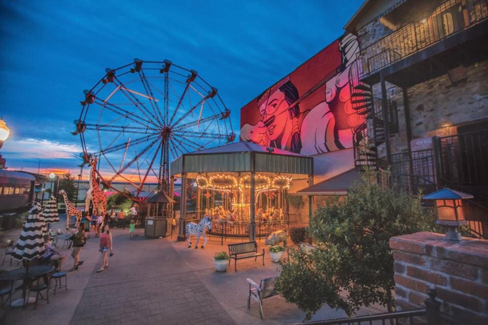 Take your farmer’s market bounty to enjoy in The Park at West End, a charming historical park in downtown Fort Smith. For a mere $1 each, you can take a ride on the Ferris Wheel from the 1935 World’s Fair and vintage carousel hand-painted in Italy. The park also features a refurbished Pullman railcar diner and double-decker bus transformed into a concession stand.
